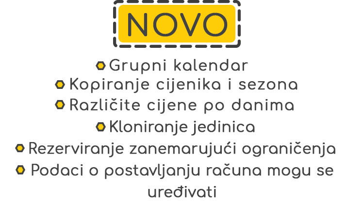 Grupni kalendarski prikaz manje vremena oduzima za upravljanje raspoloživosti svih Vaših smještajnih jedinica na jednom mjestu, a dostupan je, od danas, za sve korisnike u narednih 30 dana, nakon čega će bit dostupan samo korisnicima Premium i Premium Plus usluga.